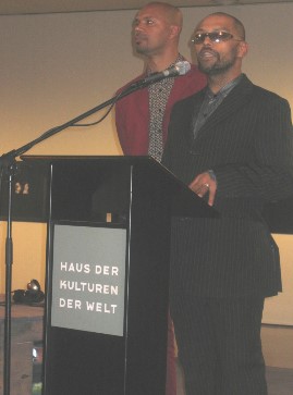 The cyberNomads team, Michael Küppers-Adebisi and Abdel Rahman Satti, organized the third Black Media Congress at the House of World Cultures in Berlin . The event began in the evening of the 29th October 2004 with an opening speech by Thomas Krüger, president of the Federal Agency for Civil Education (Bundeszentrale für politische Bildung (BpB)). The agency is the major sponsor of the Black Media Congress. Krüger's speech was followed by a welcome address from Peter Seel, an official of the House of World Cultures and project leader/curator of the Black Atlantic event. After his welcome address, Michael Küppers-Adebisi and Abdel Rahman Satti explained the work of cyberNomads and the goals of the Black Media Congress.